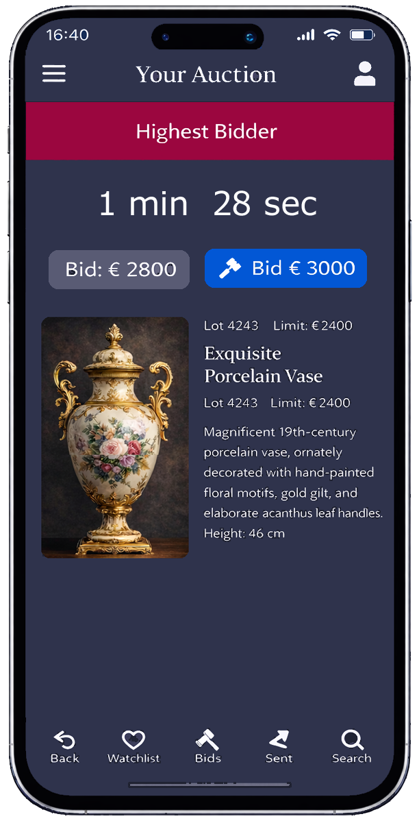 Ha Ön az alkalmazást használja, a licitálók további push-értesítéseket kapnak – például az ajánlatbeadások, túllépések, aukciónyeremények vagy egy tétel lejárta előtt. Ez jelentősen növeli a részvételt, mert a felhasználónak nem kell folyamatosan „belépnie”, hanem pontosan a megfelelő pillanatban kap emlékeztetőt.
